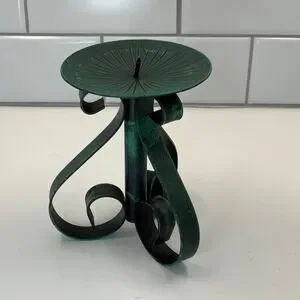 Vintage Green Verdigris Wrought Iron Pillar Candle Holder Scroll Base Hong Kong