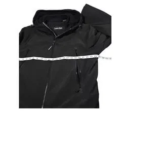 Features: Bonded soft shell fabric, full-zip closure, zippered hand pockets, and the iconic CK felt logo patch on the left sleeve.
