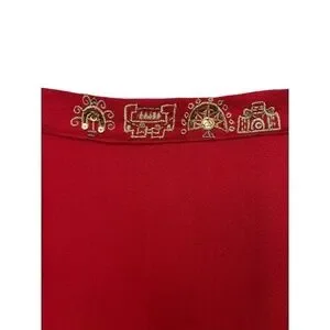 Donna Vinci Plus Size Red Midi Back Zip Kick Pleat Gold Embellished Skirt 20