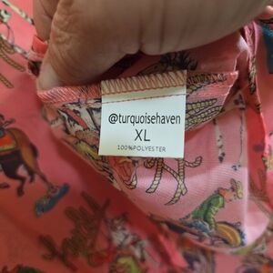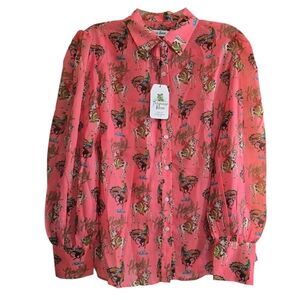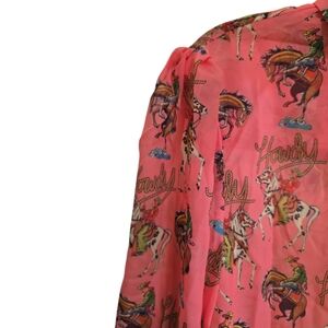 NWT Turquoise Haven Western Pink Howdy Blouse XL Puff Sleeves Bucking Bronco