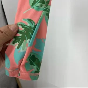 Rash guard. 50 UPF long sleeved pink and green Monstera leaves. Kids size 14. Perfect condition.