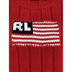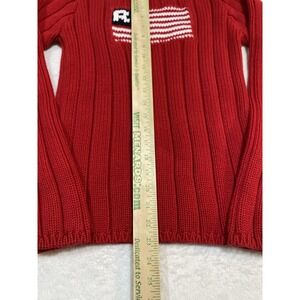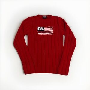 VTG Polo Jeans Co Ralph Lauren Knit Cable Red American Flag Sweater Women L