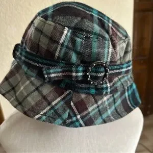 D&Y Women One Size Fits Most Plaid Bucket Hat with Embellished Buckle Accent