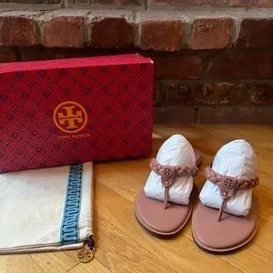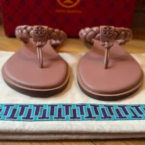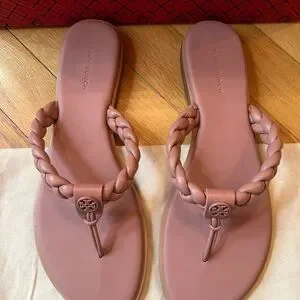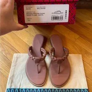 AUTHENTIC & Classic Tory Burch Benton Braided Leather Thong Sandals in Mallow (like a mix between tan & mauve/dusty rose)!!