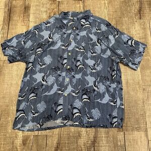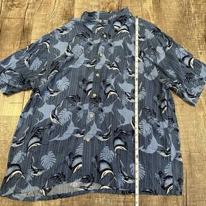Puritan Men's Short Sleeve Sail Fish Print Rayon Hawaiian Shirt Blue XL Vintage