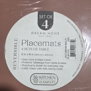 Dream Home Set of 4 Jacobean Multi Placemats Reversible Hard Table Mats 12x16