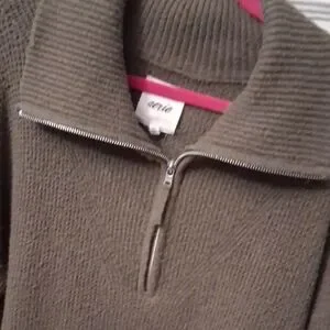 aerie two-piece knit set featuring a half-zip cowl pullover. Matching pants Soft textured fabric for layered looks. Casual, comfortable style in an olive green tone. inseam 29" sweater oversized