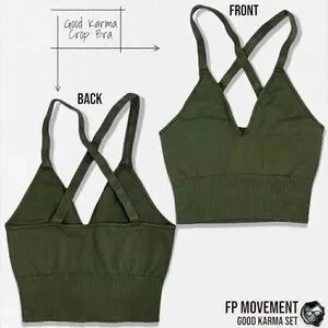 FP MOVEMENT GOOD KARMA SET: CROP TANK BRA + FLARE LEGGINGS IN MUSHROOM & GREEN