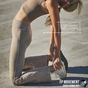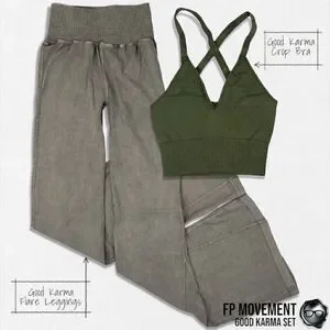FP Movement Activewear Good Karma Crop Bra + Flare Leggings in Mushroom & Moss