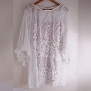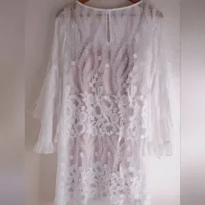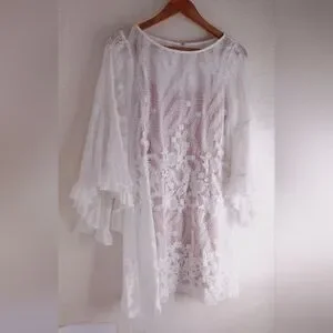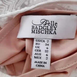 Badgley Mischka Soft White Sheer Lace Mini Dress With Nude Dress Slip
