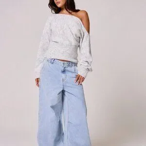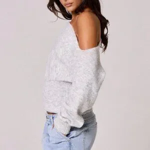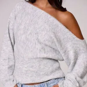 Grey Casual Women's Knit Asymmetrical Shoulder Cinched Waist Sweater Top