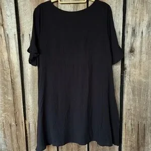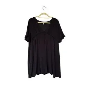 Gorgeous Blue Rain boho mini dress in classic black. Size Large. Features pintucked bodice details, decorative button placket, flutter sleeves, and full lining for comfortable wear. Flowy, lightweight, perfect for festivals, casual days, or a layered fall look.