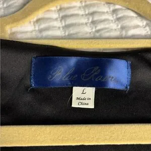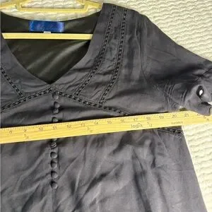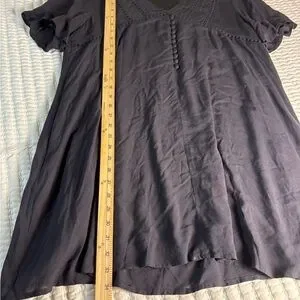 Blue Rain Black Boho Mini Dress L | Lined, Button Detail