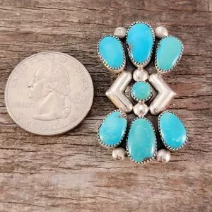 Zuni Julie Ondelacy Lahi Sterling Native American Turquoise Dual Pendant Brooch