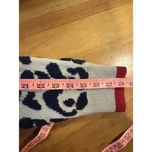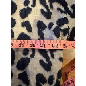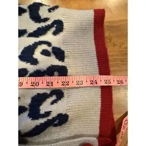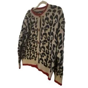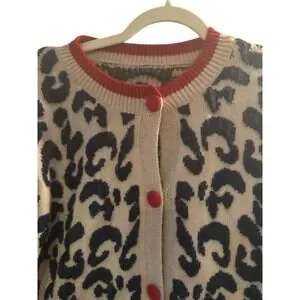 Leopard Print Taupe Navy Blue Cardigan Red Buttons *No Size Tag See Measurements