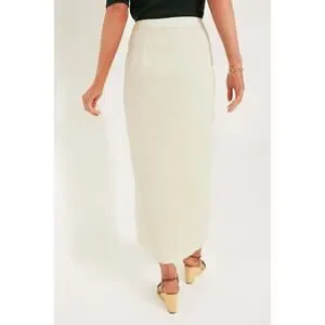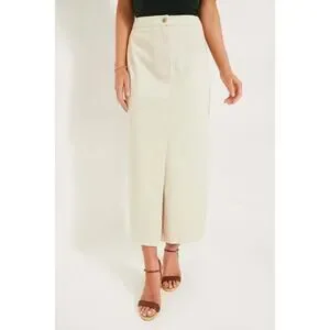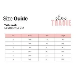 We created the Denim Lia Skirt to be the ultimate closet staple- a flattering style that you can throw on with a sweater and boots in the cold-weather months and with a blouse and sandals for the warm-weather. This straight silhouette boasts a center front slit. heavyweight fabric. and creamy ecru color. Versatile and flattering. this is sure to be a wardrobe favorite!