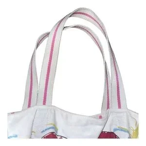 Brighton White Canvas Tote with Red Heart Graphic and Pink Accents