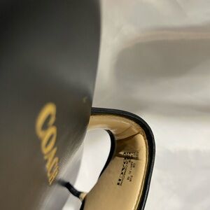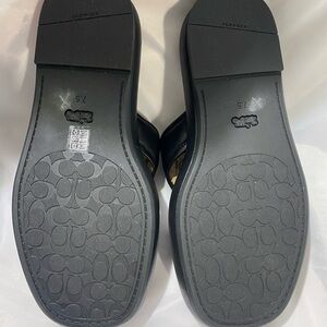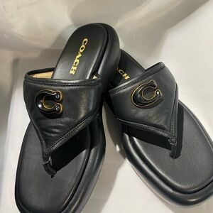 These refined thong sandals feature a pillowy leather strap embellished with Coach's iconic "C" hardware. Designed for both comfort and style, they include a cushioned leather insole and a sporty bubble flatform heel that measures approximately 1.5 inches.