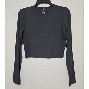 NWT Skims Soft Lounge Ribbed Crop Top Womens Small Graphite Long Sleeve