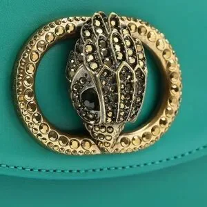✨Kurt Geiger NWT Chelsea Teal Leather Saddle Crossbody, Brass Chain, KG dustbag