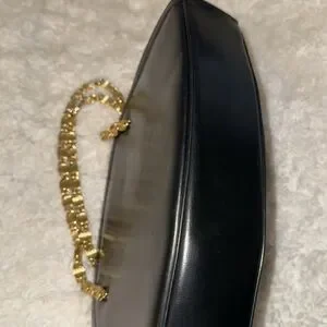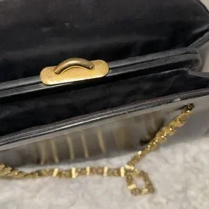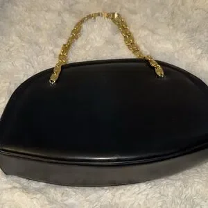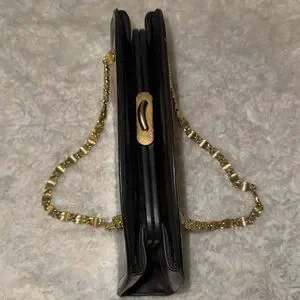 Vintage black leather Crown Lewis purse bag w/ gold chain
