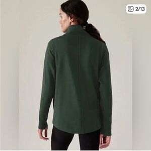 Athleta Cozy Karma Twist Neck Sweatshirt Seaweed Green Womens XS