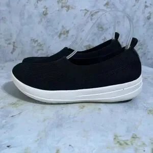Fitflop Uberknit Womens Sz 6.5 Shoes Black White Slip On Comfort Casual Sneakers