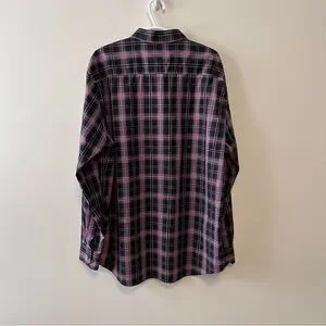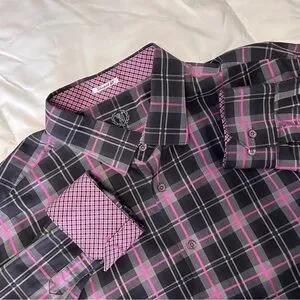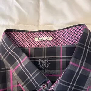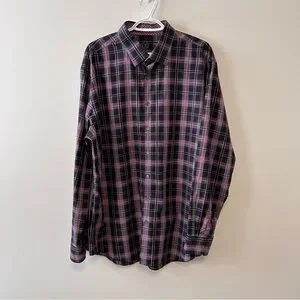 Bugatchi Men’s XXL Cotton Shape Fit Button Down Dress Shirt Black Pink Plaid EUC