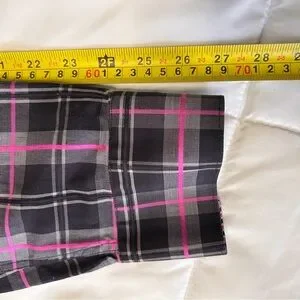 Classic black and pink plaid men's dress shirt with contrasting inner cuff and collar details. Designed for a sharp, modern look that works for office or evenings out. 100% Cotton for a Lightweight, breathable fabric for all-day comfort. Features full button front and tailored lines for a polished fit