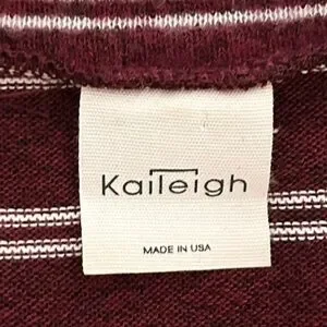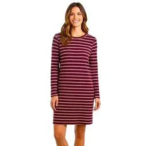 Chic Kaleigh long sleeve casual dress with burgundy & white stripes. Crew neck. Perfect for versatile styling. Super soft. made in USA. Euc