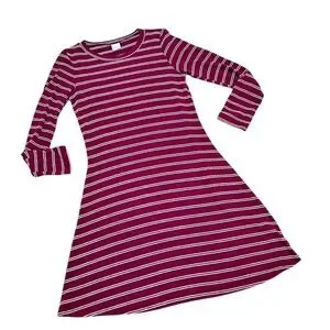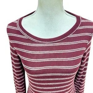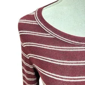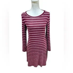 Kaileigh Burgundy & White Striped Long Sleeve casual comfy soft Dress size small