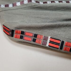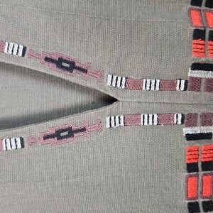 - Red, black, white and brown Aztec print embroidery on front, back and sleeves