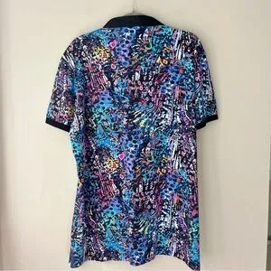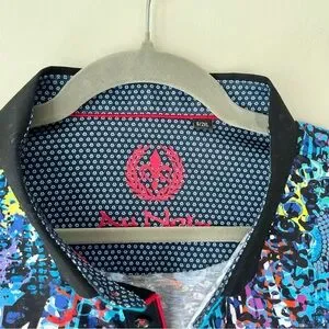 AU NOIR | Blue Abstract Graffiti Sakura Polo Shirt Multi Size 6