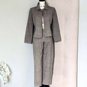 FLAWED* VTG 100% Wool WOOLMARK Glen Plaid Pantsuit, Zipper Blazer, Fully Lined