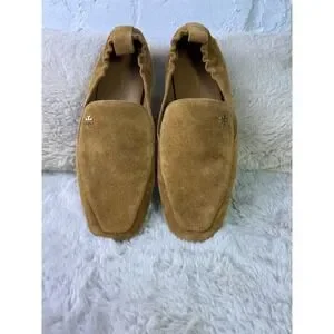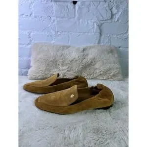 Tory Burch Suede Loafers Tan Brown Scrunch Back Square Toe Flats Shoes Size 8