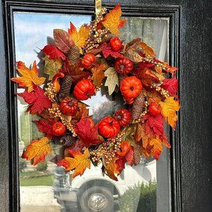 18’’ Autumn Front Door Harvest Wreath with Various Pumpkin