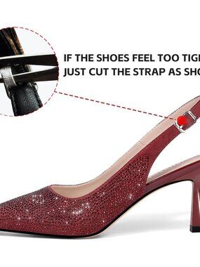 The sling back heels is decorated with shiny rhinestones, adding a touch of glamour to your outfit, and attracting attention for both everyday wear and formal occasions.