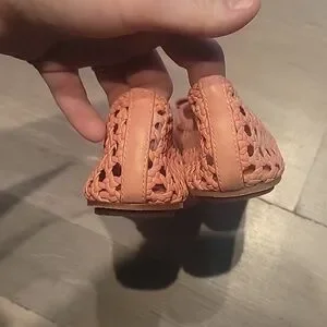 Comfortable woven ballet flats in coral. Soft, breathable upper with perforated design. Decorative bow and subtle hardware accent. Lightweight sole for all-day wear. Stylish coral color works well with casual and dressy outfits.