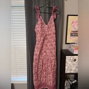Flowing Dress with an allover pink floral print. Lightweight Material Perfect for Summer