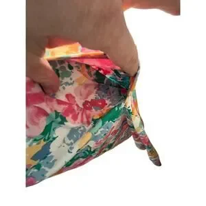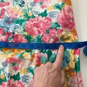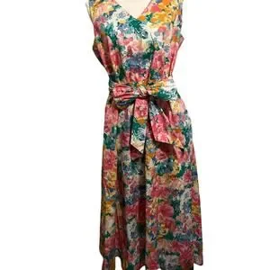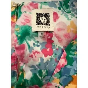 Ann Klein Medium Dress Floral Cotton V Neck Floral Tea Length Cottage Whimsy