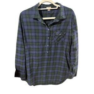 J. Crew metallic gold thread plaid half button down shirt l
