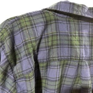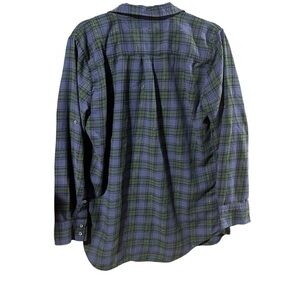 Stylish plaid button down shirt. Features a classic collar and chest pocket. Perfect for casual wear. Size large. Style E4011 .