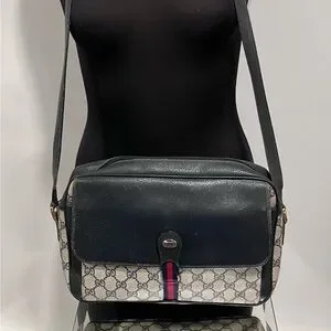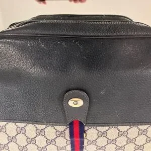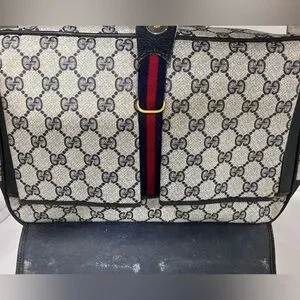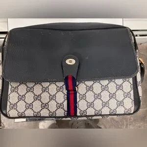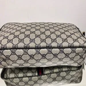 Vintage Gucci School Bag Ophidia Messenger Authentic Certified 12” x 9” x 3” Entire bag is structurally sound. Most wear visible on blue flap outside and inside blue flap. Not sure if a tag is meant to be on zipper. Coated Canvas in great shape. Strap has wear although still structurally sound. I sent into Check Check and it was authenticated and Passed. One owner - stored for decades . no smell or odors.