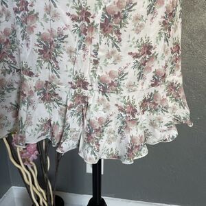 Trixxi Women's A-Line Puff Sleeve Mini Wrap Dress Size M Floral Off-Shoulder