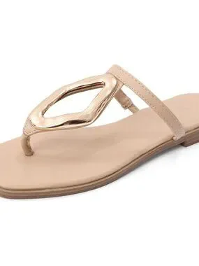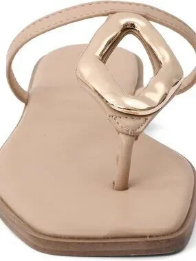 🆕Women's Nude Flip Flops Slip On Square Open Toe Slides Sandals for Summer