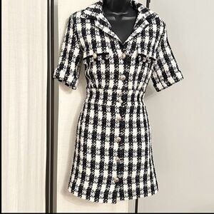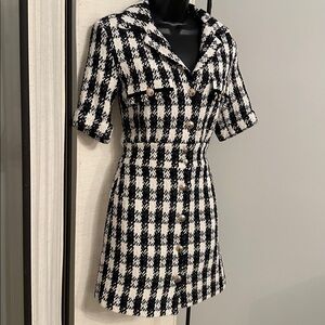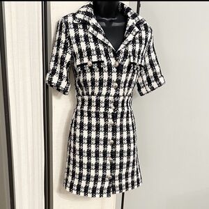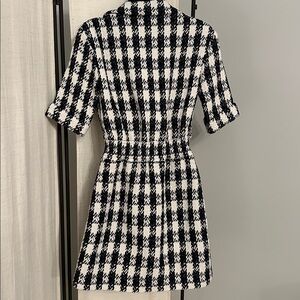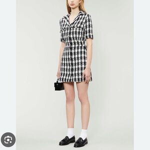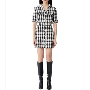 Maje Ricky Tweed Black White Houndstooth Mini Collar Shirt Mini Dress 36
