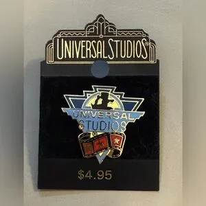 This Vintage Universal Studios Movie Reel Film Camera Trading Pin is a rare and unique collector's item. Crafted in China, this original piece showcases the iconic imagery of the film industry: Unmodified and in new old stock condition, this pin is a must-have for any movie memorabilia enthusiast looking to add a touch of nostalgia to their collection. New on Card, 1" tall.