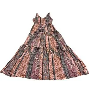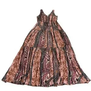 Venus Lascana Dress Womens Small Pink Paisley Boho Tiered Maxi Sleeveless