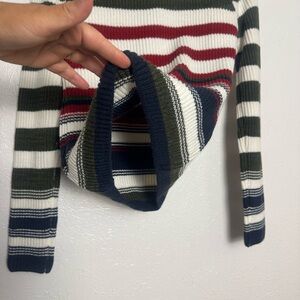 Chic turtleneck with bold stripes. Features white, green, red, and navy. Perfect for layering. Urban Outfitters BDG New With Tags Multicolor Striped Turtleneck Sweater. Knit long sleeve top. Size medium. Measurements laying flat are approximately Chest- 20 Length- 24