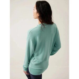 NWOT Athleta Purana V-Neck Wrap Sweatshirt in Mint Green, Size Medium. Oversized Fit. Retail $89.